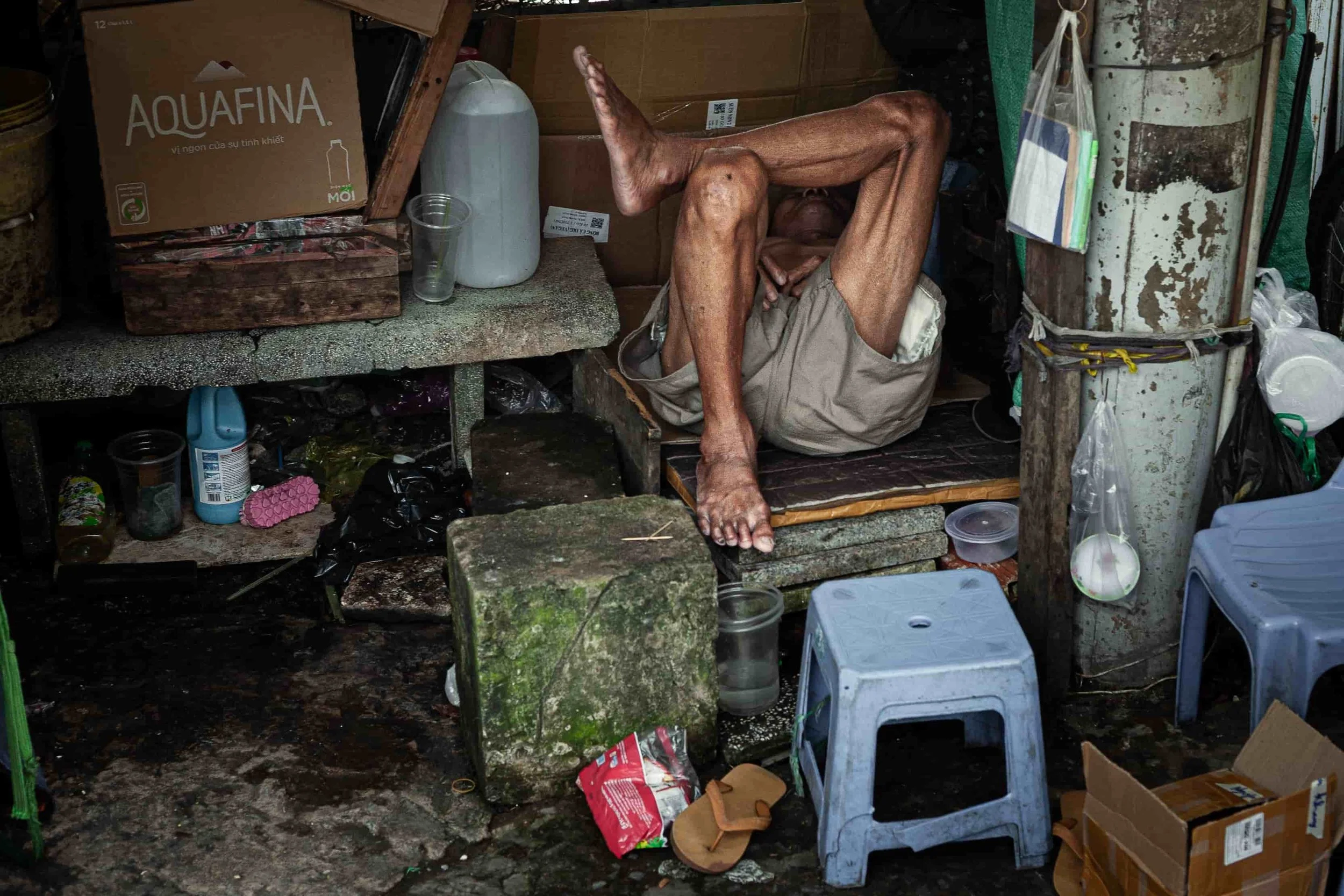 The rain was infrequent, unexpected, and heavy. This Grab driver took a break in a Banh Mi shop, and I don’t blame him.