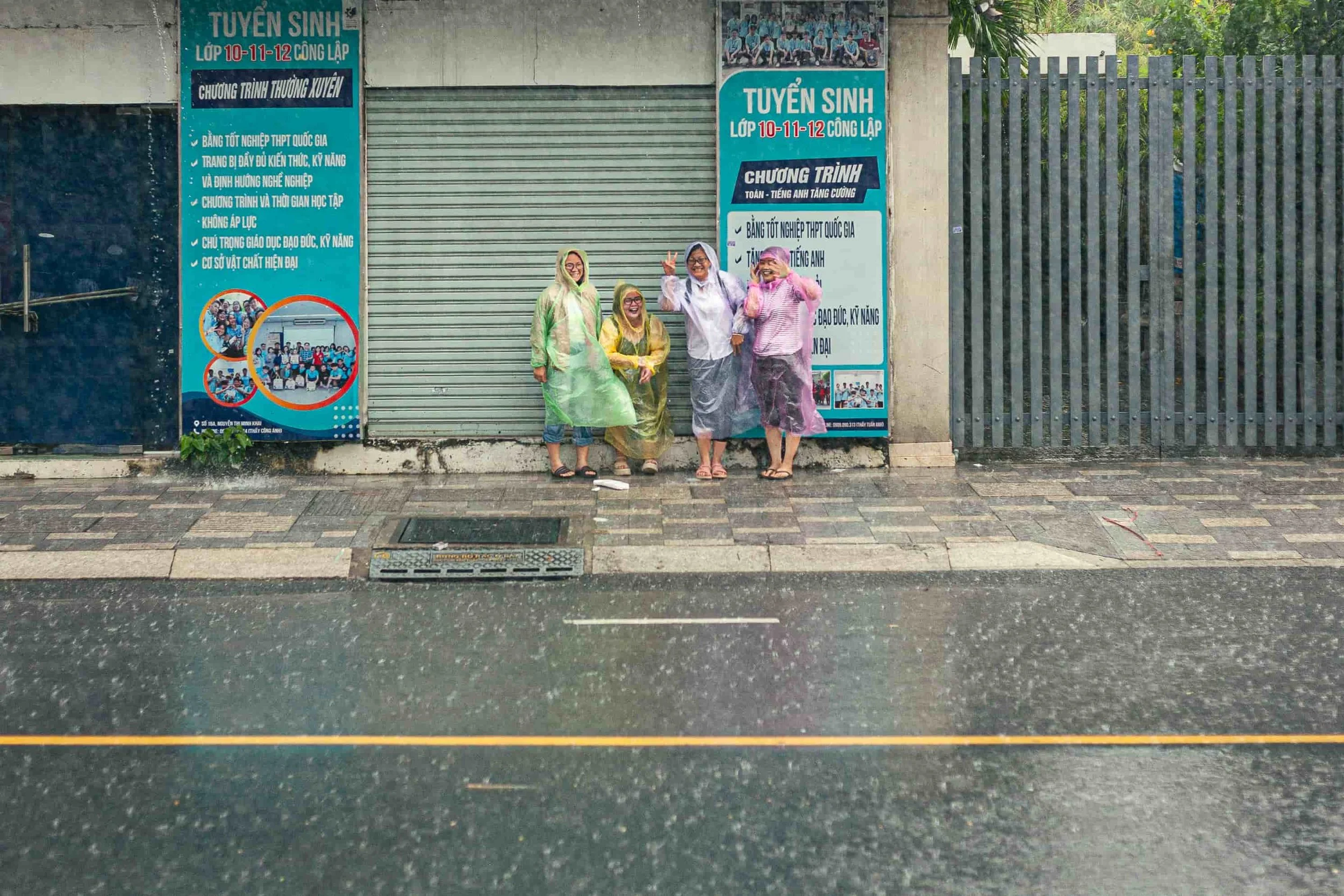 These ladies were great. The rain hit, they all scrambled to don their plastic rain coats and were laughing so much, their happiness was a real joy to watch. They waved at me and I gestured to take a photo, and they were playing up to it all. Fantastic moment.